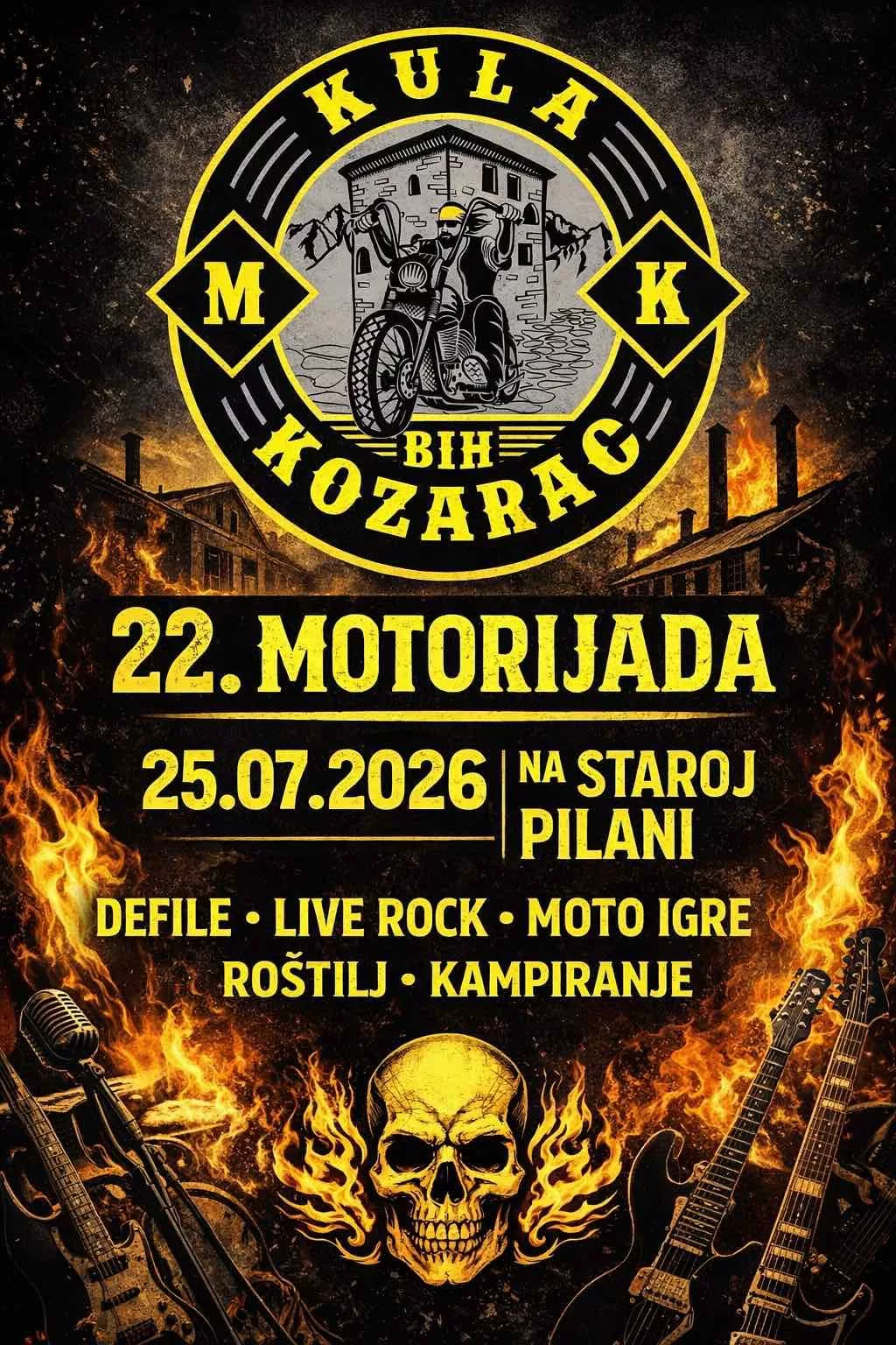 MK Kula Kozarac - 22. Motorijada 2026 25.07.2026 Defile, Live Rock, Moto Igre, Kampiranje...