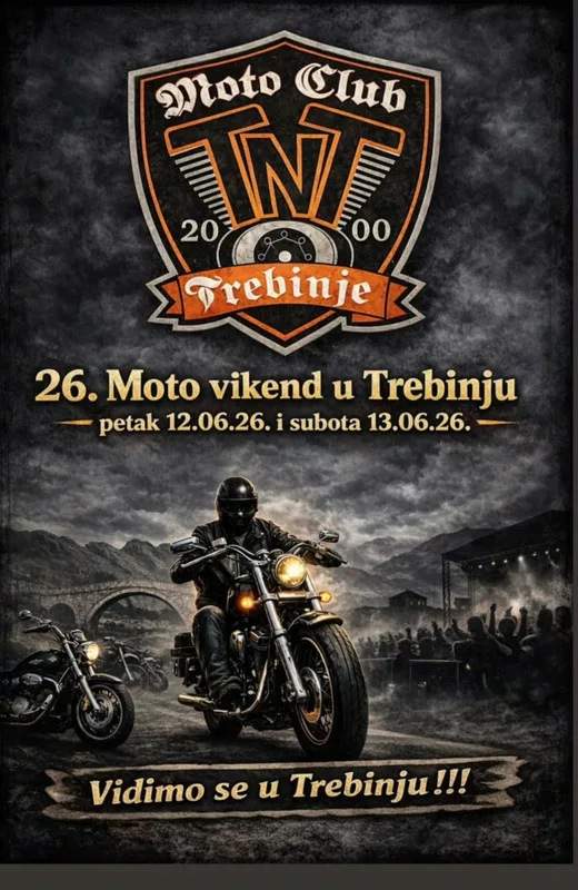 Moto Klub TNT Trebinje 26. moto vikend 2026. 12.06.2026 - 13.06.2026.