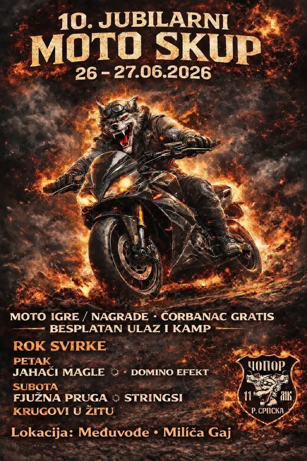 MK Čopor - 10. Jubilarni Moto Susret 2026 26.06.2026 - 27.06.2026. Lokacija: Međuvođe, Milića Gaj put Kozarska Dubica - Prijedor.